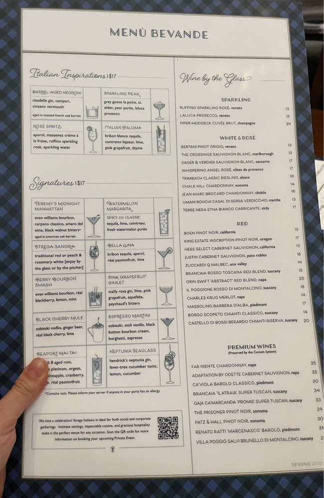 Welcome to Strega Italiano, a captivating dining experience nestled in the heart of Boston’s Park Plaza. This restaurant beautifully marries Italian culinary inspirations with exquisite beverage offerings. The menu highlights include artisanal cocktails like the barrel-aged Negroni and the refreshing Italian Paloma, crafted with premium spirits and expertly balanced flavors.